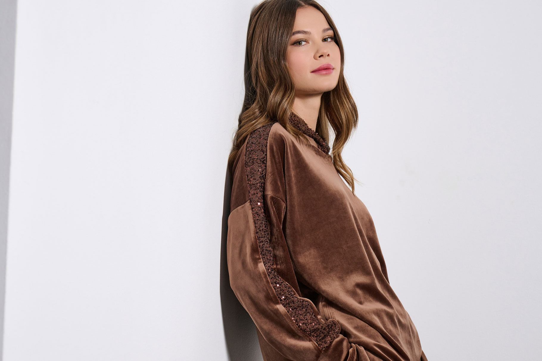 • SEQUINS ALONG THE SLEEVES AND SHOULDERS