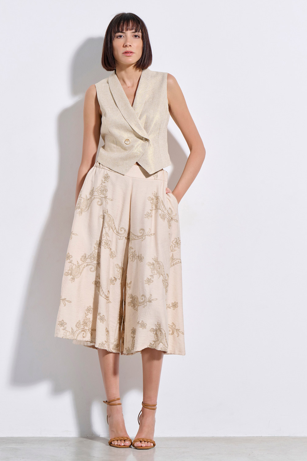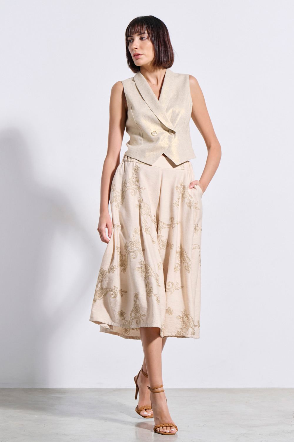• GOLD THREAD WITHIN THE FABRIC' S TEXTURE