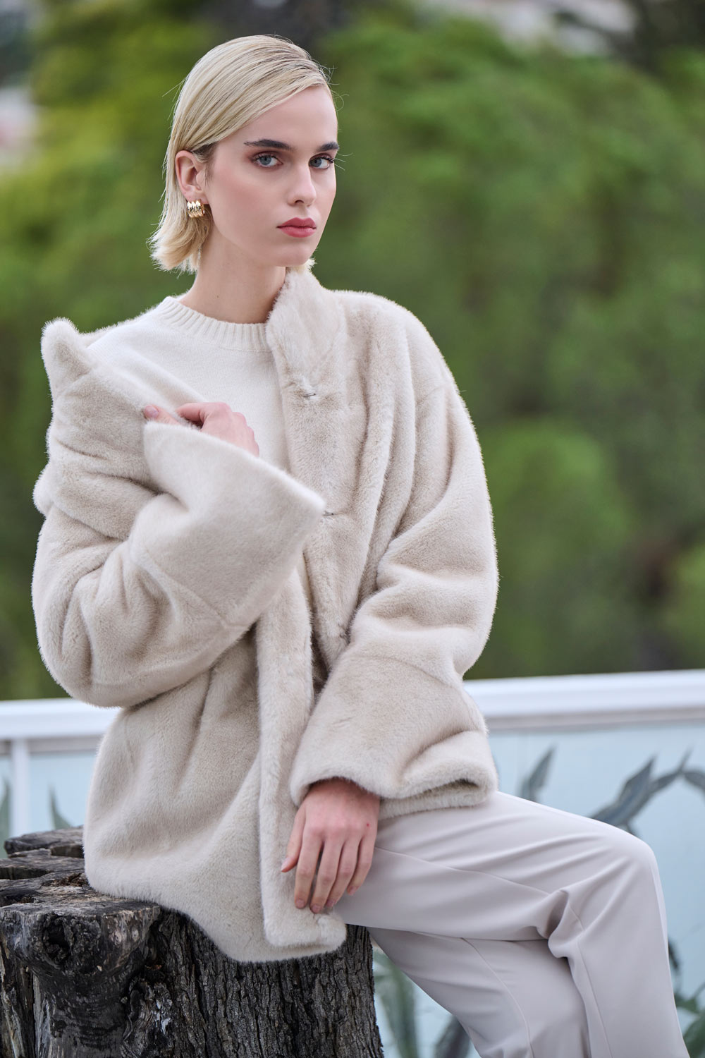 CROPPED FAUX FUR 2225501 CHOCOLATE