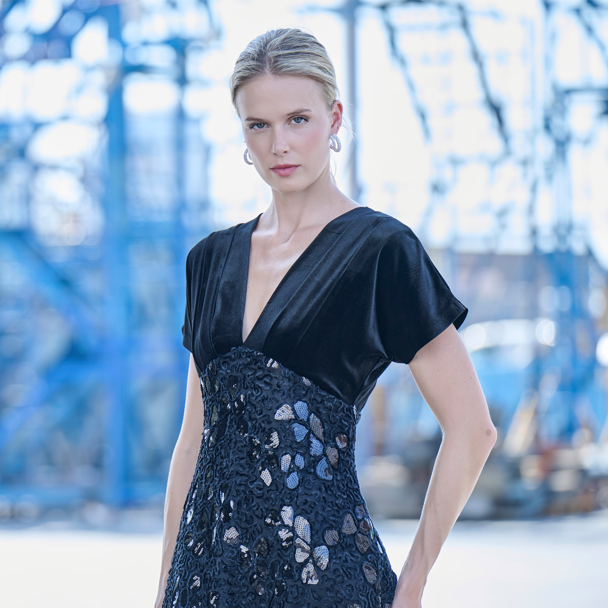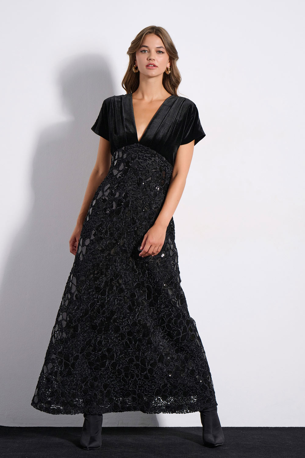 • BODY MADE OF VELVET LACE WITH SEQUINS