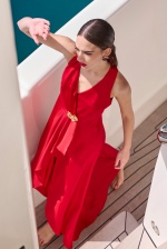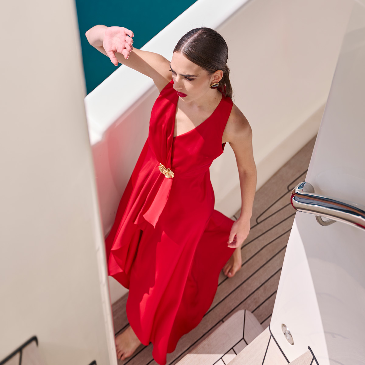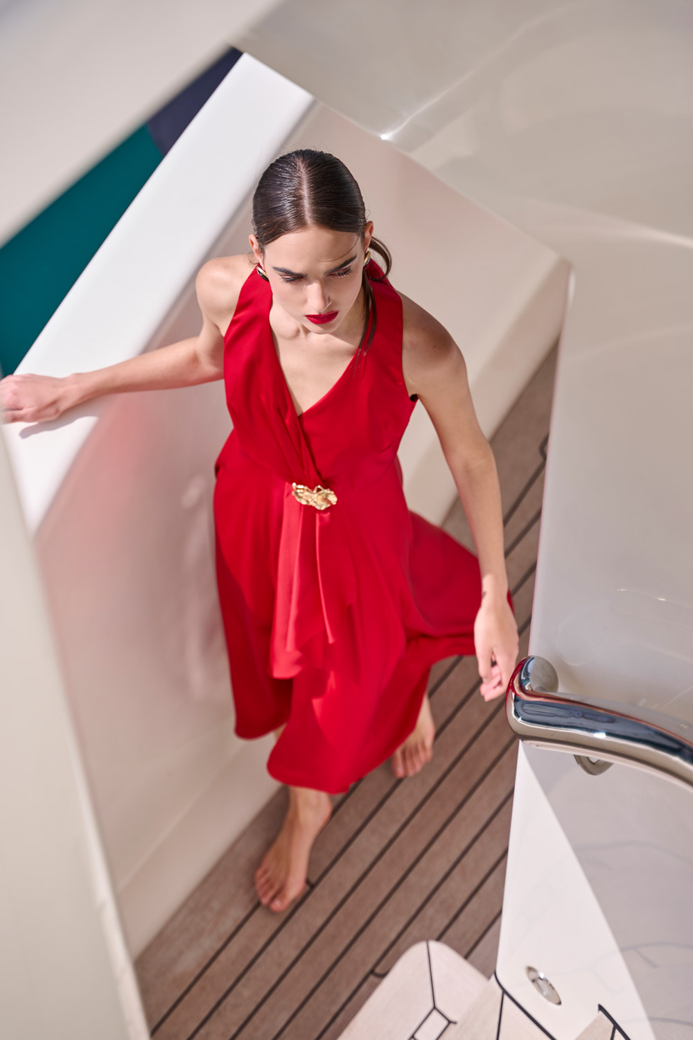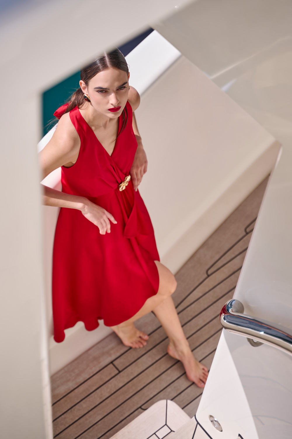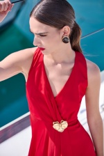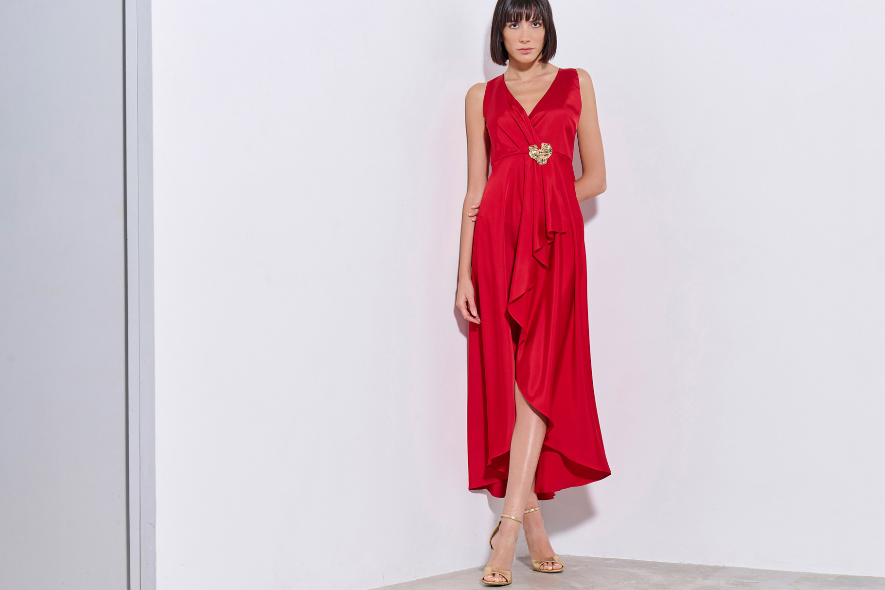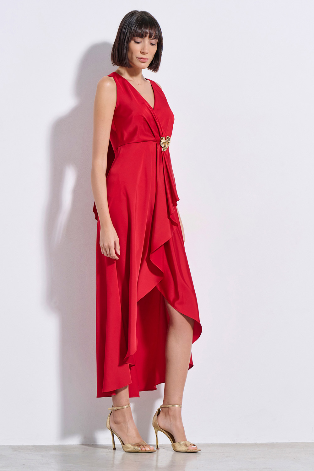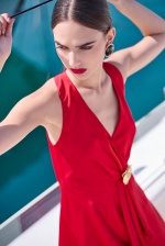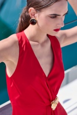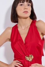 • WRAPPED NECKLINE WITH A DECORATIVE BUCKLE