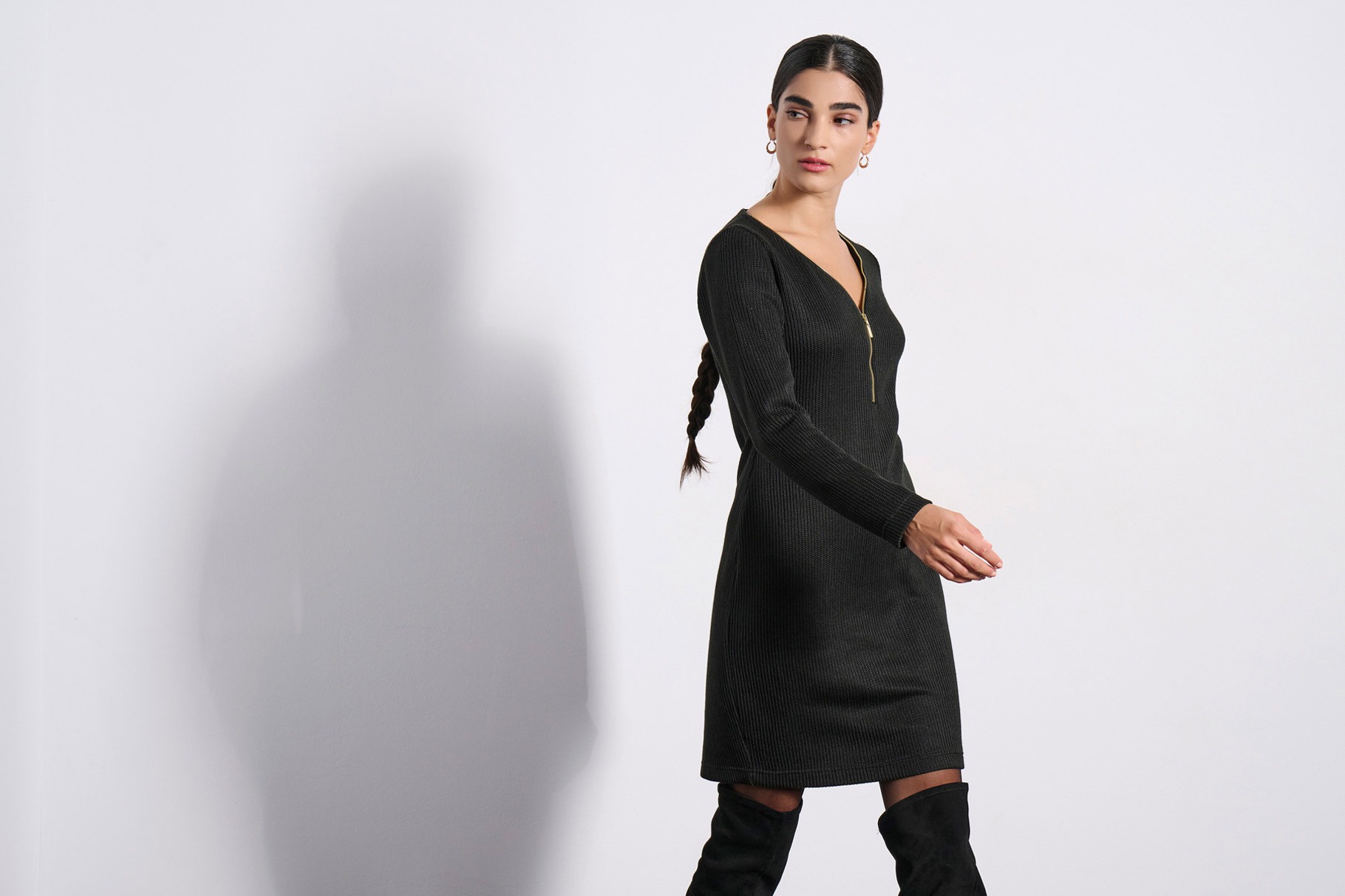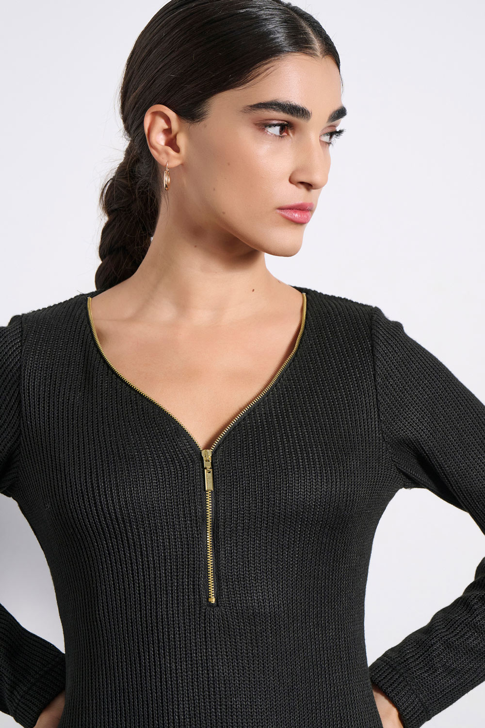 • "V' NECKLINE WITH DECORATIVE ZIPPER