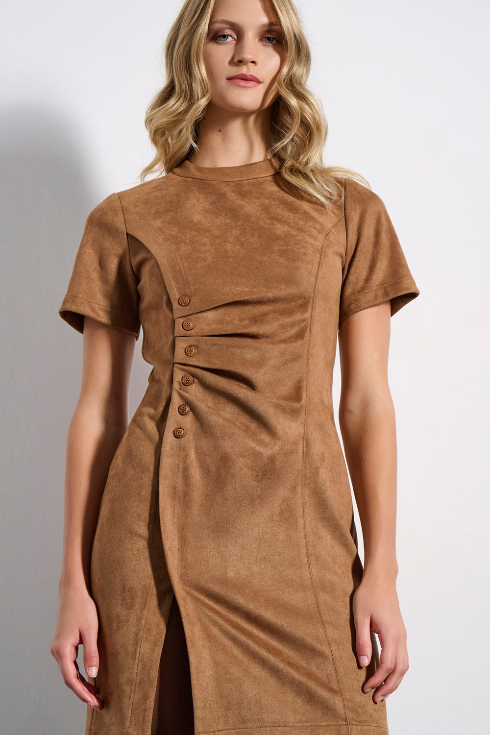 • PLEATS AT THE FRONT WITH DECORATIVE BUTTONS