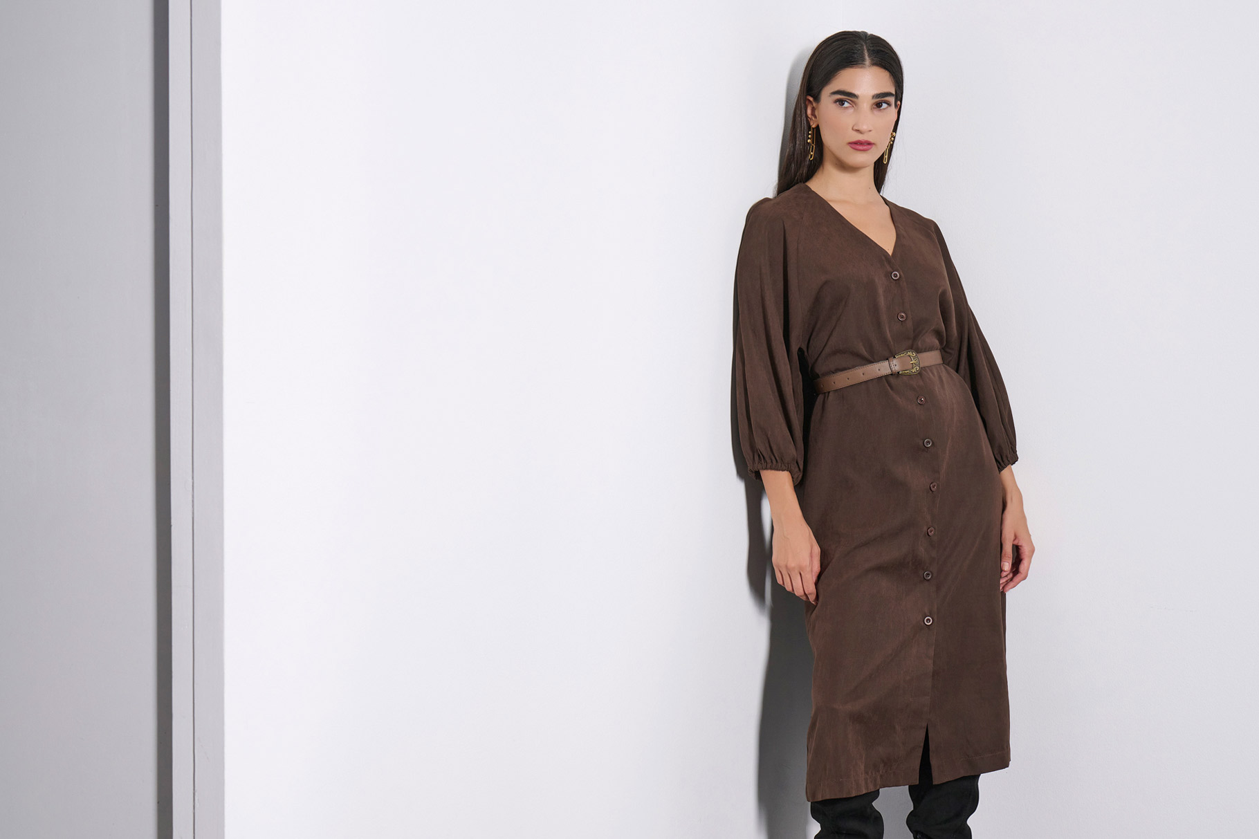 MIDI DRESS 3225917 DARK BROWN