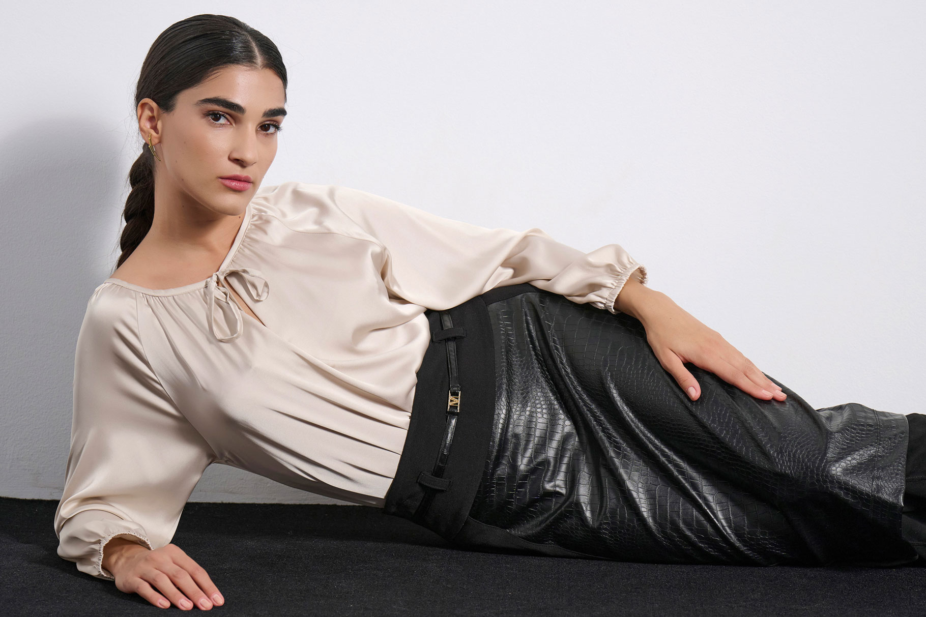 • FRONT SIDE MADE OF SYNTHETIC LEATHER WITH CROC PATTERN