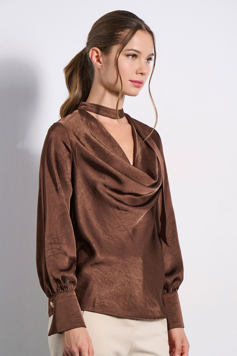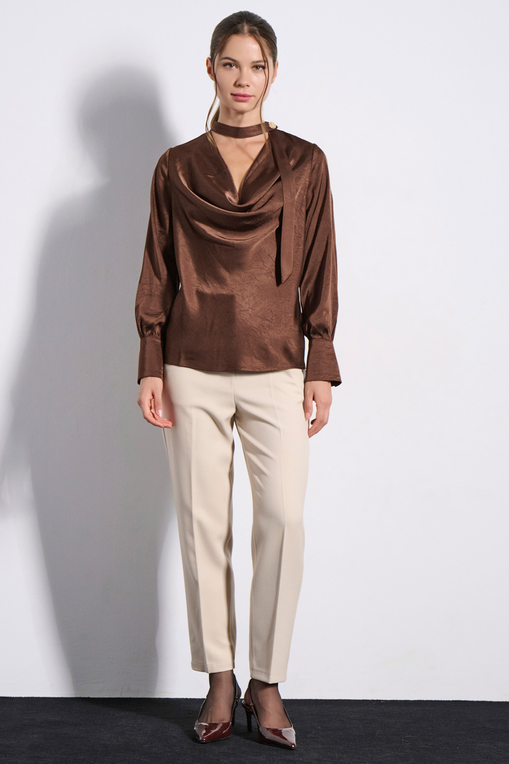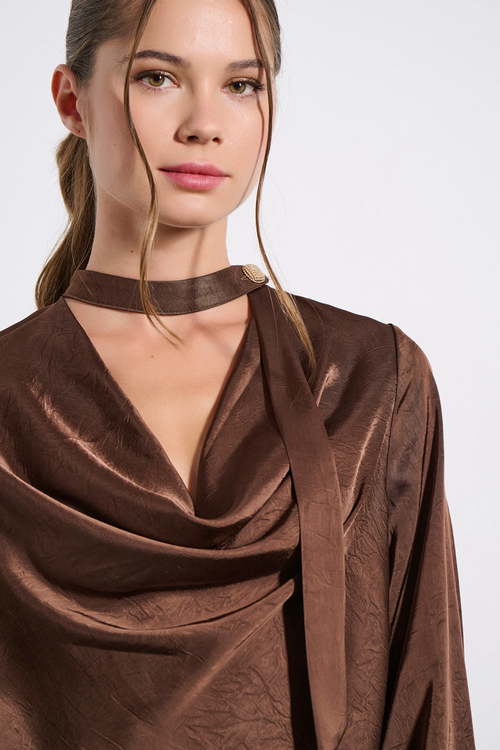 • NECKTIE FABRIC AT THE SIDE OF THE NECKLINE WITH BUTTON