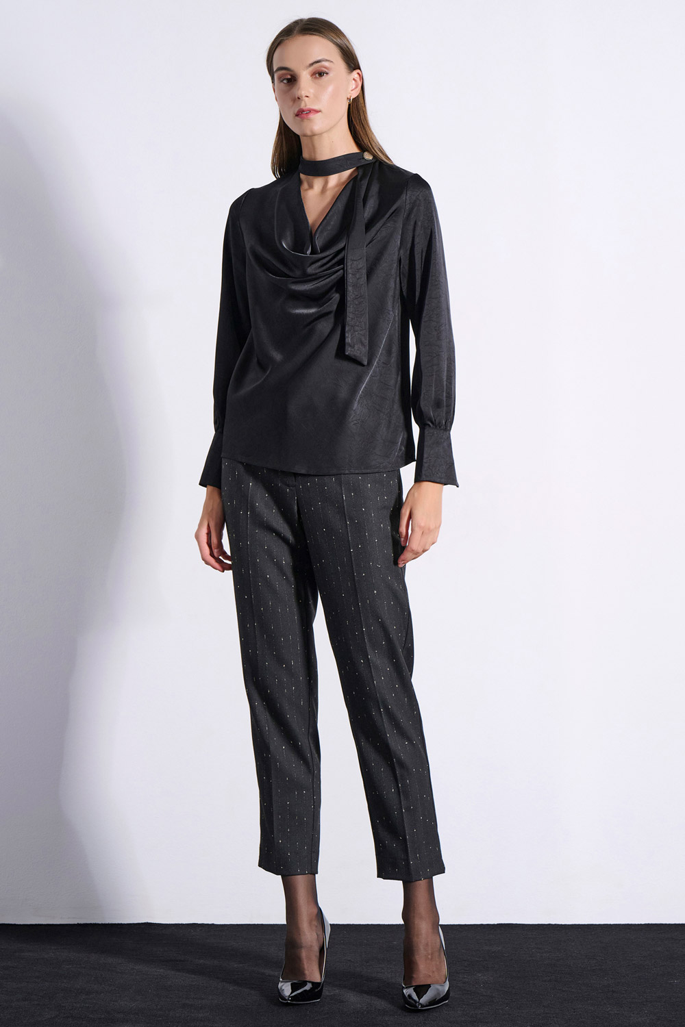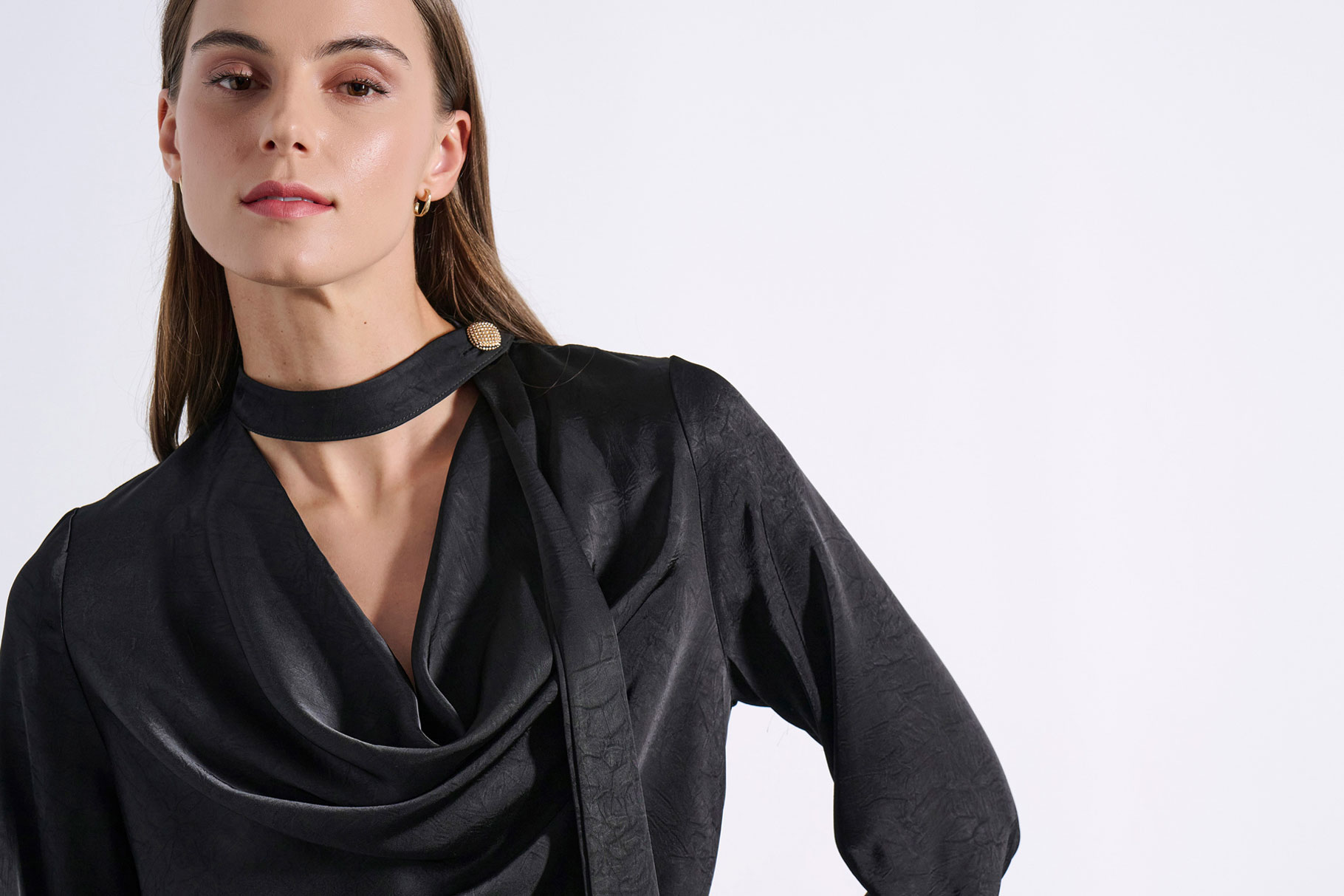 • NECKTIE FABRIC AT THE SIDE OF THE NECKLINE WITH BUTTON