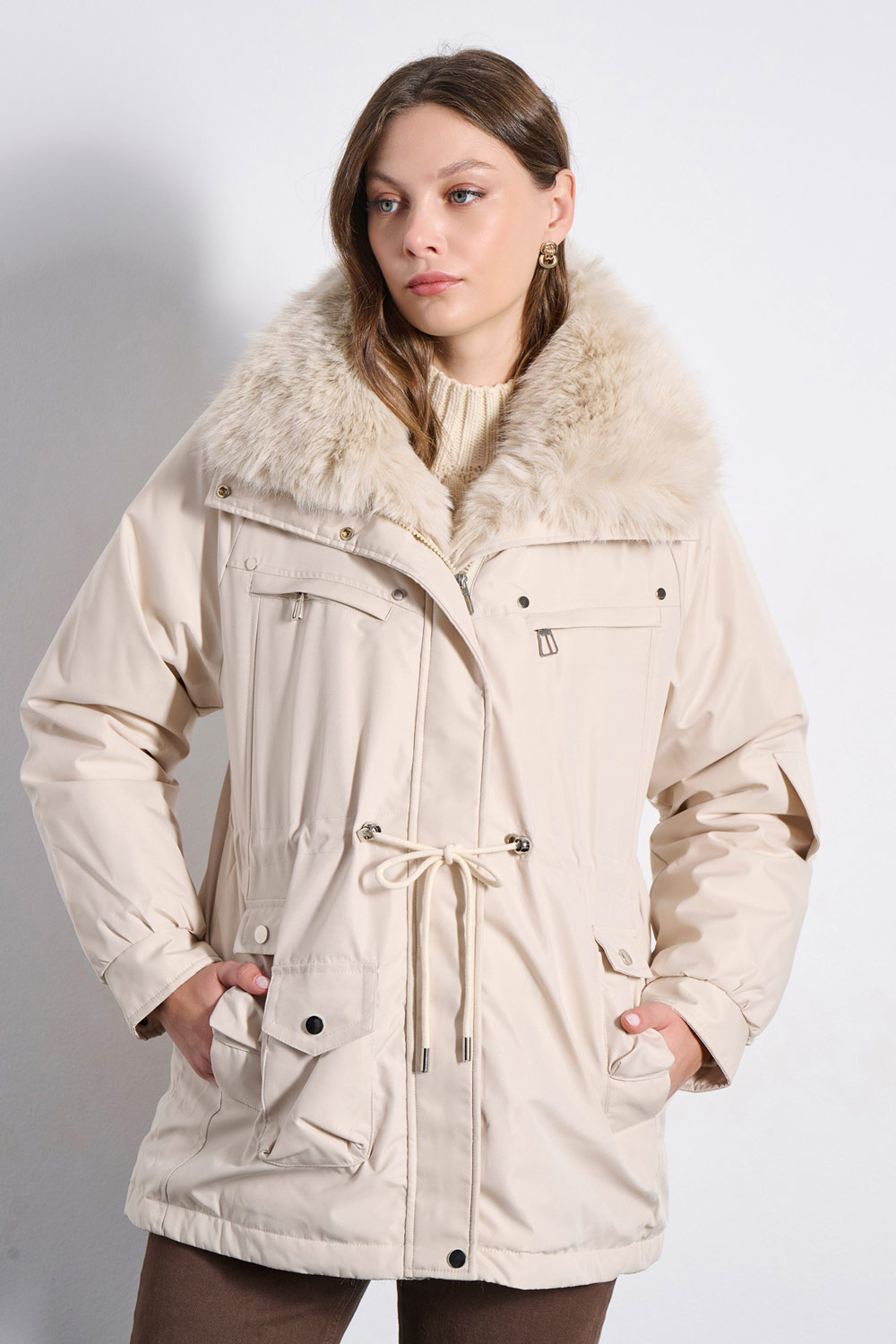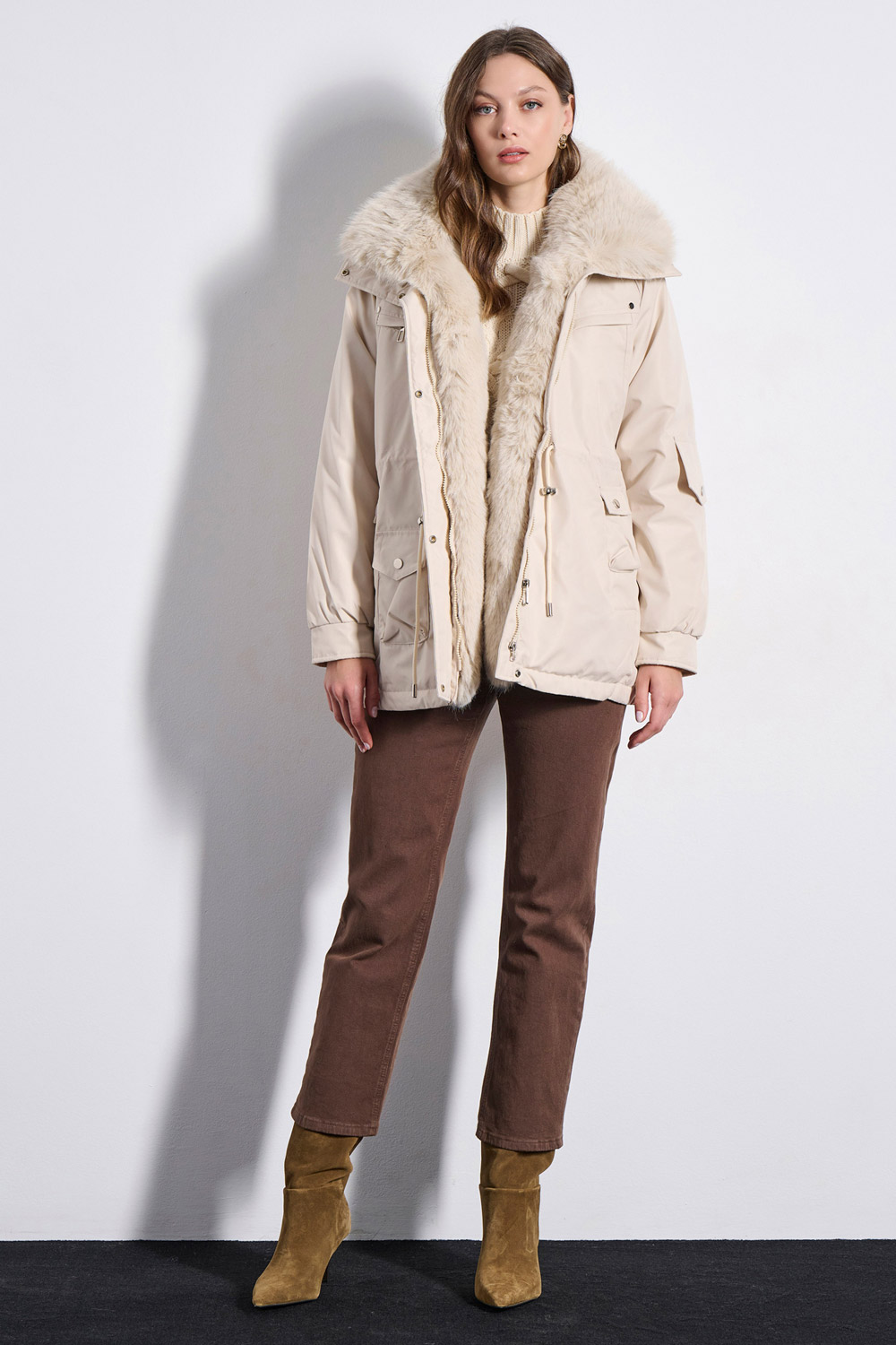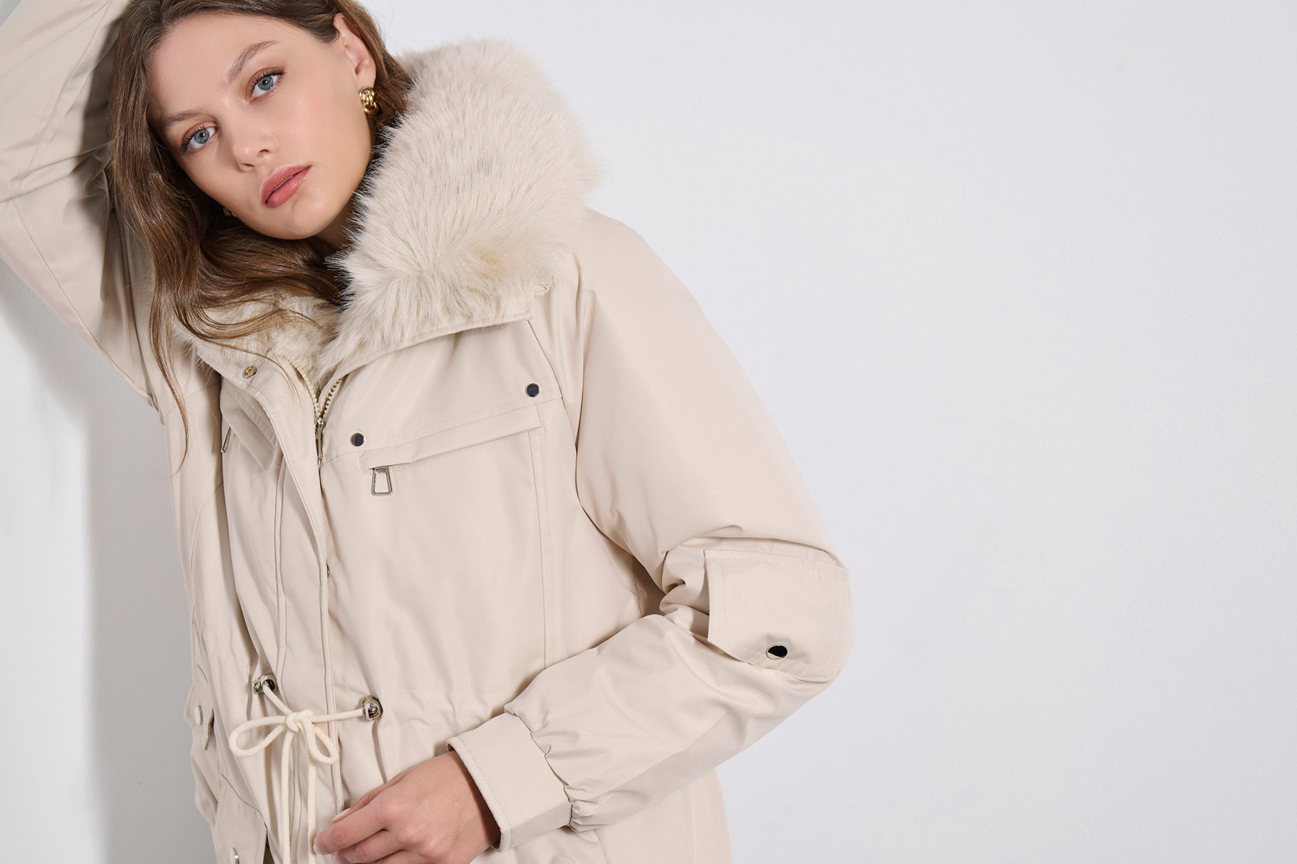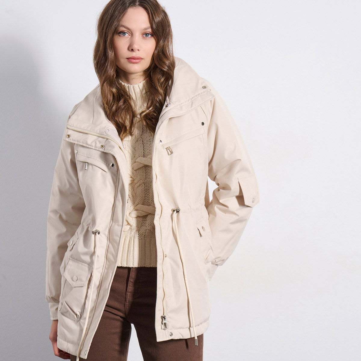 • FRONT CLOSURE WITH SNAP BUTTONS AND ZIPPER