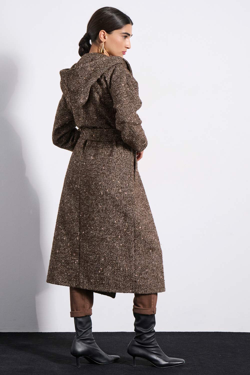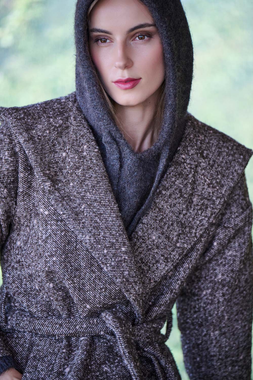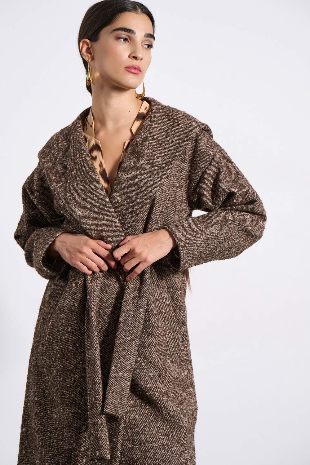 • FRONT CLOSURE WITH BELT FROM THE SAME FABRIC