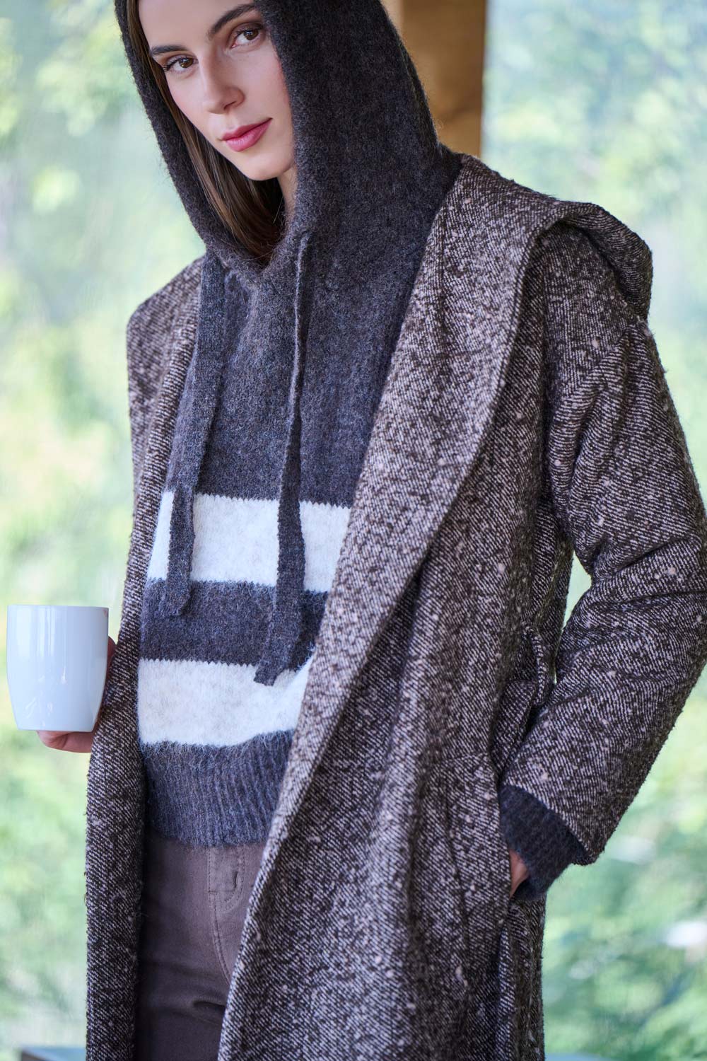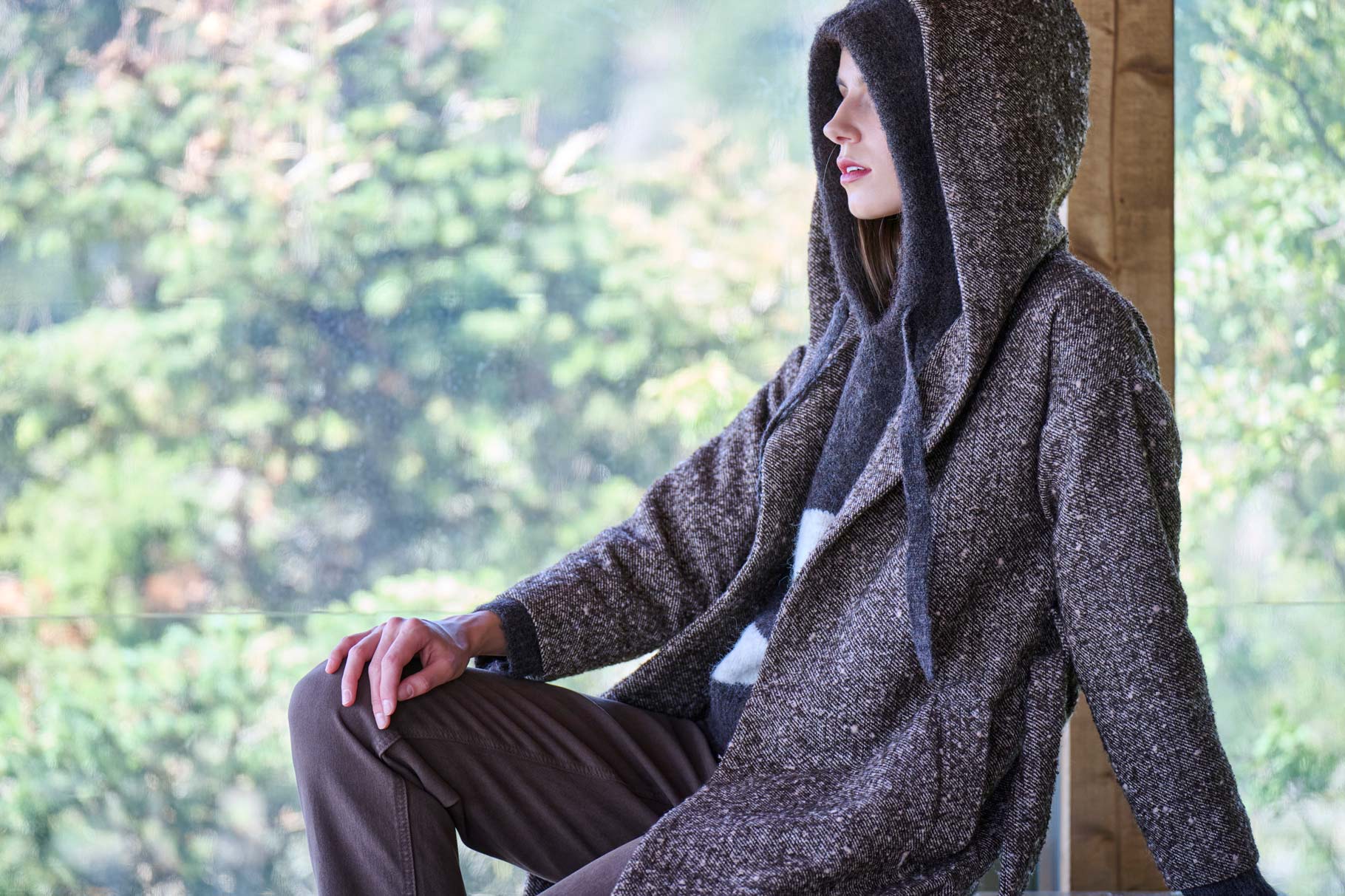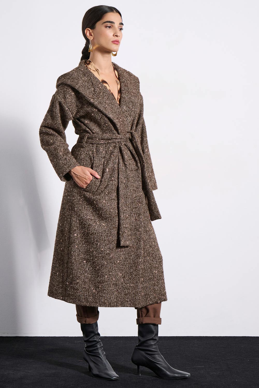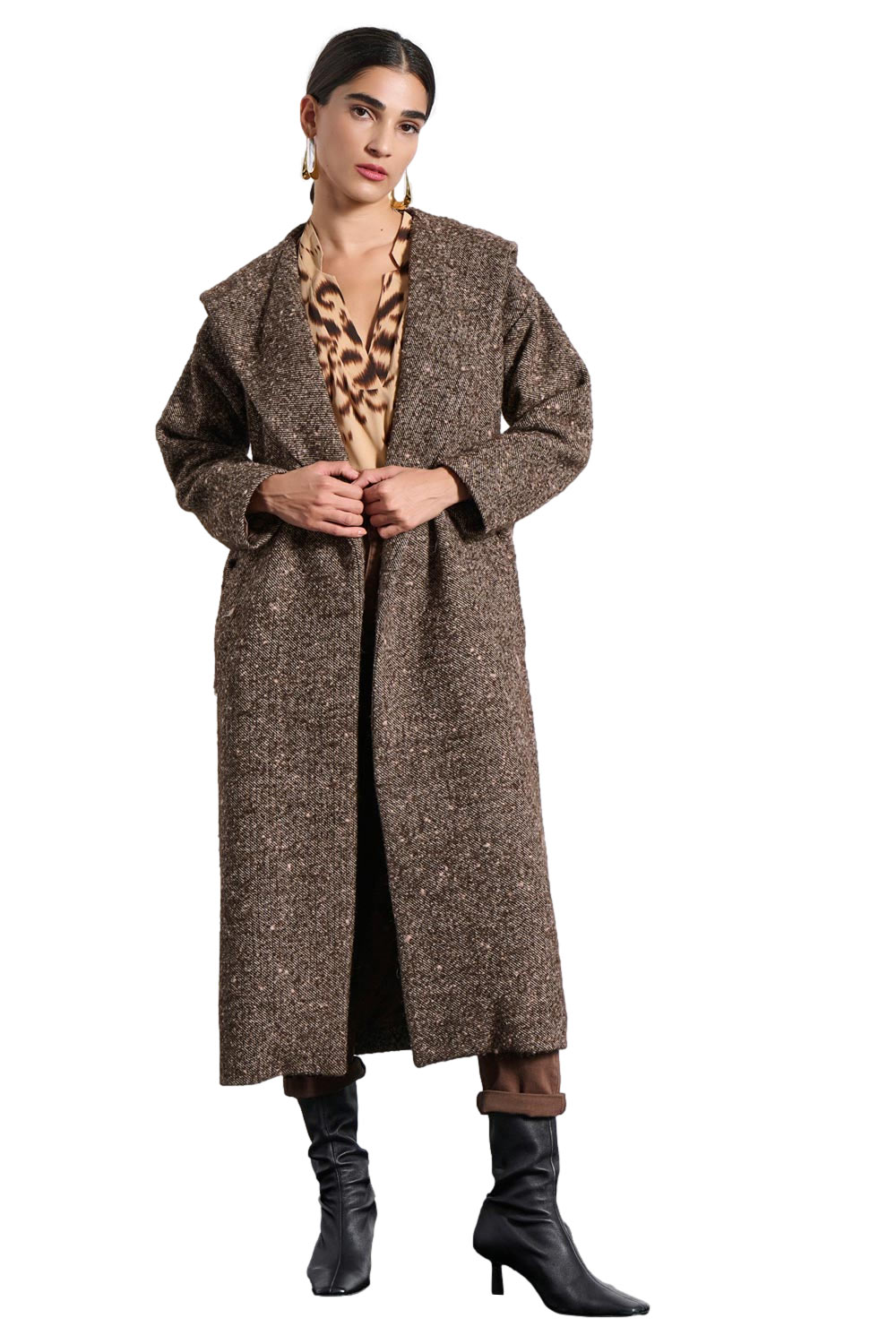 • FRONT CLOSURE WITH BELT FROM THE SAME FABRIC