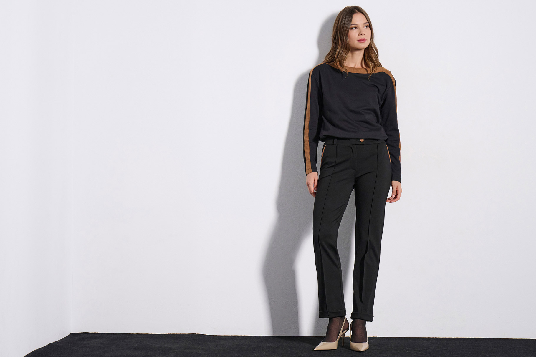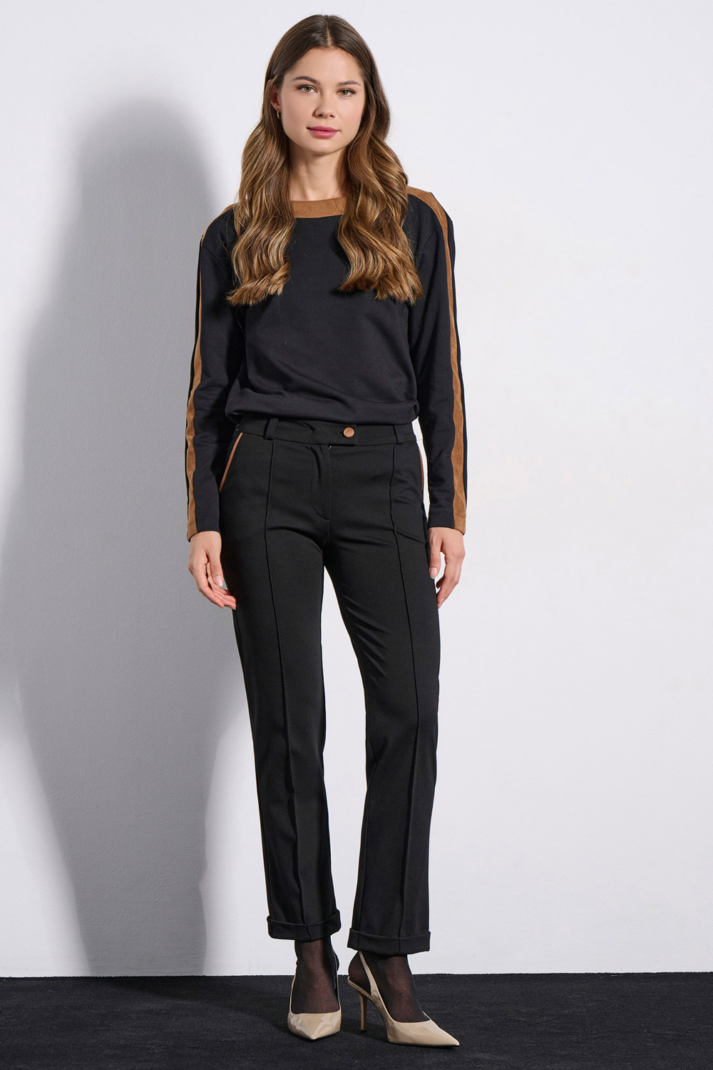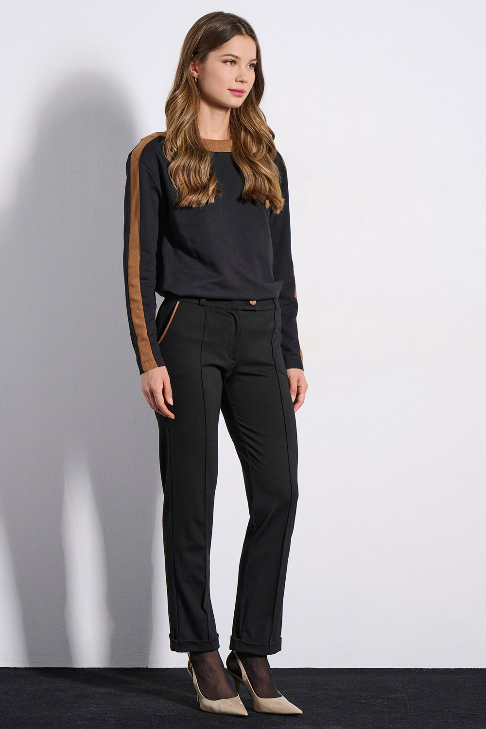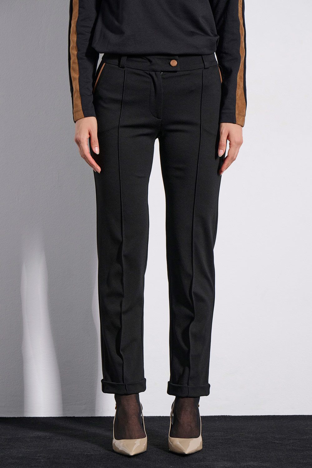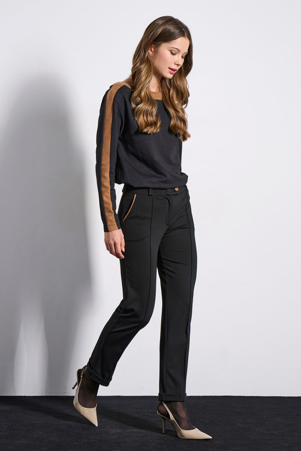 • FRONT WELT POCKETS WITH SUEDE TRIM