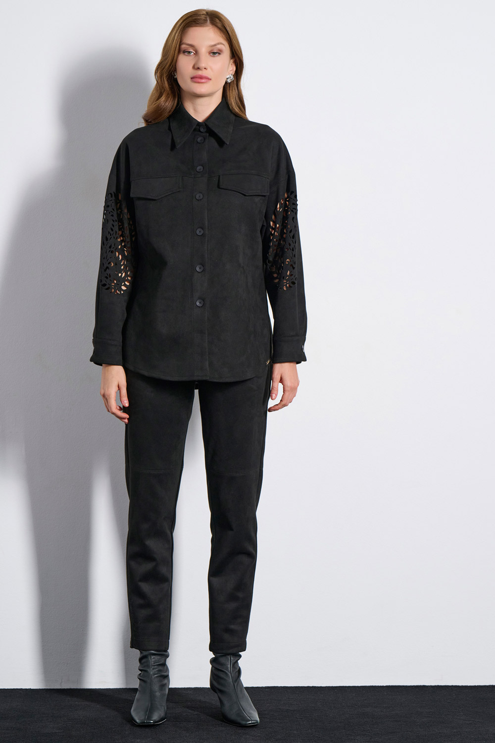 • LONG CUFFED SLEEVES WITH BUTTON AND LASER CUT