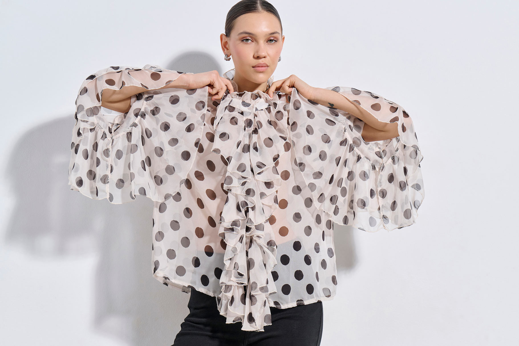 • LONG SLEEVES WITH RUFFLED FINISHING