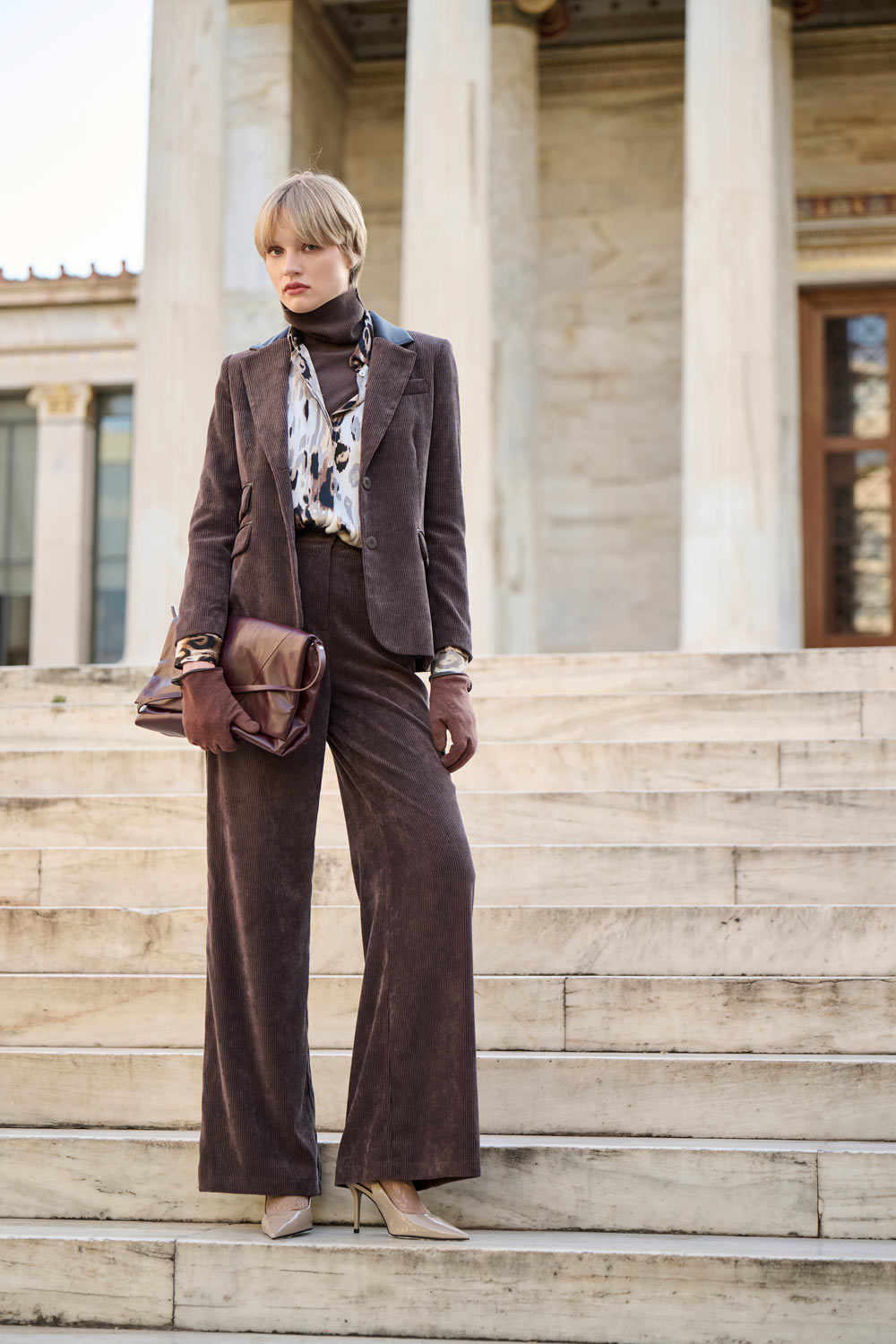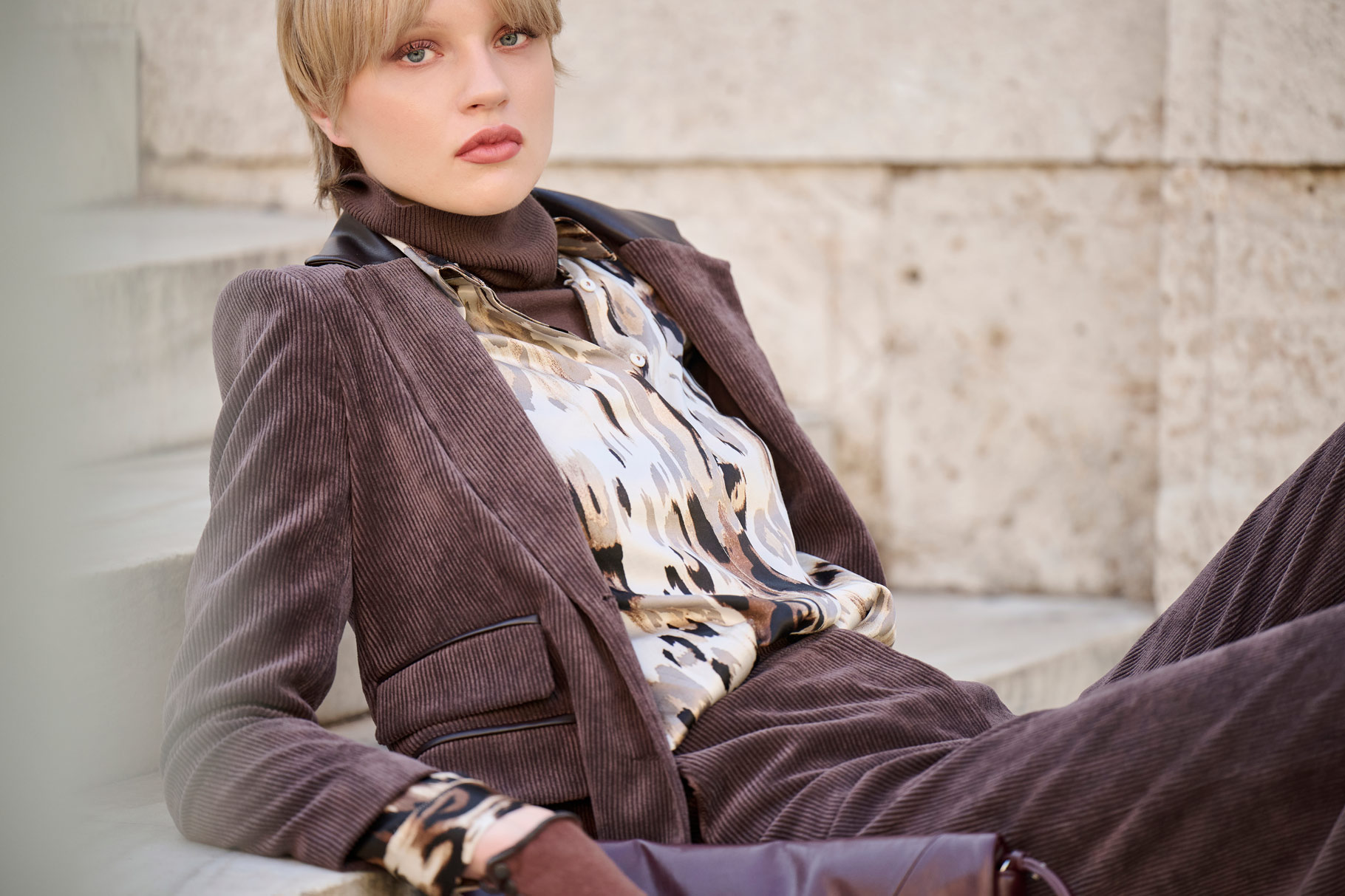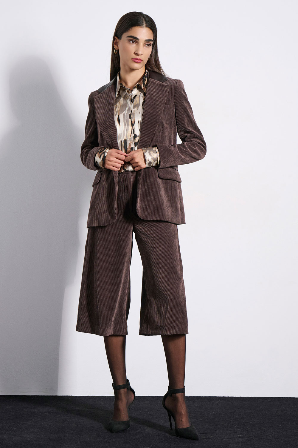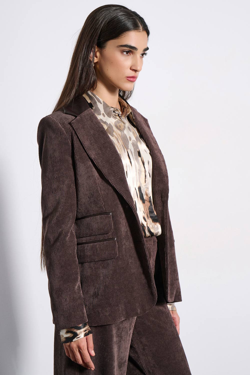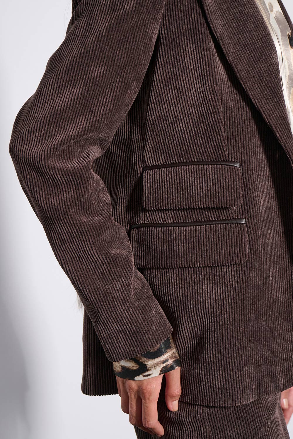 • THREE FLAP POCKETS AT THE FRONT SIDES WITH DECORATIVE FAUX LEATHER TRIMS