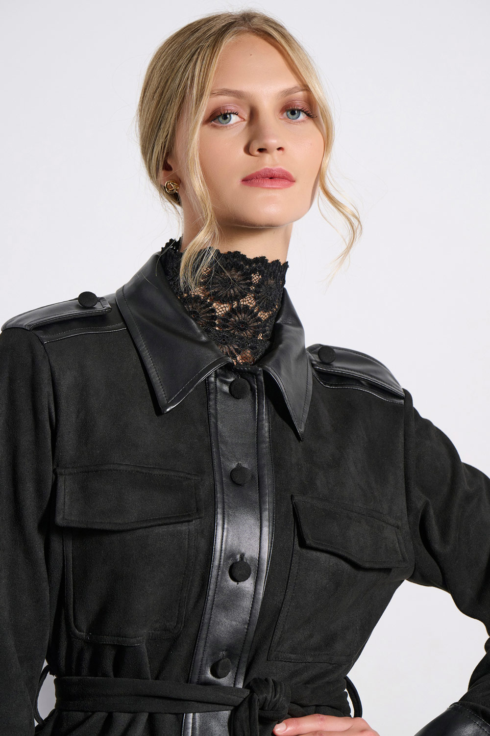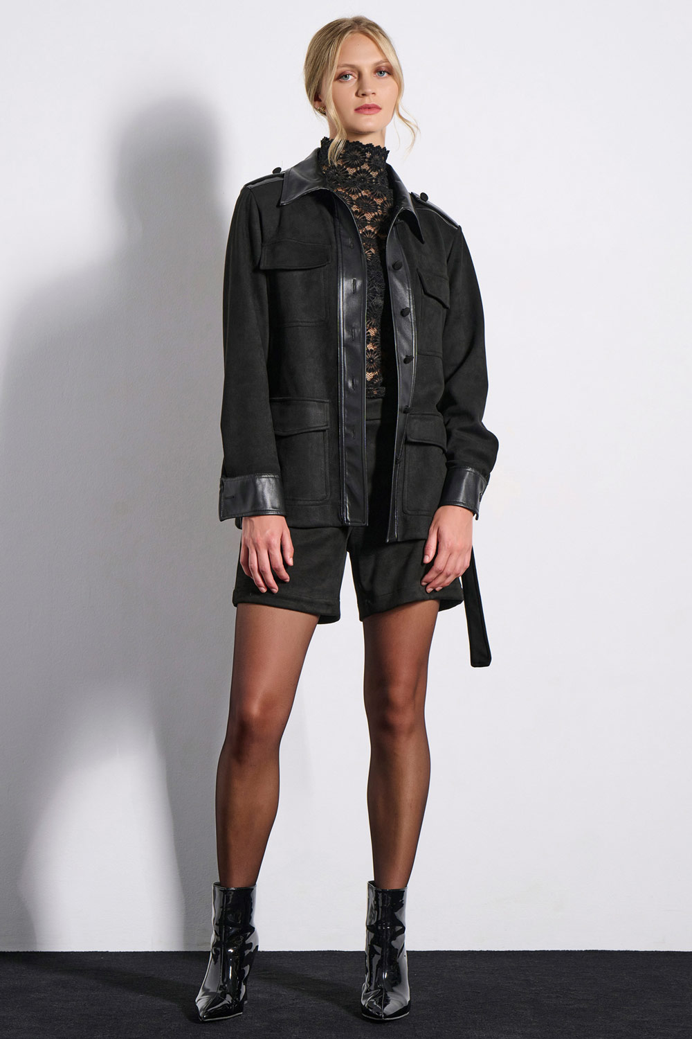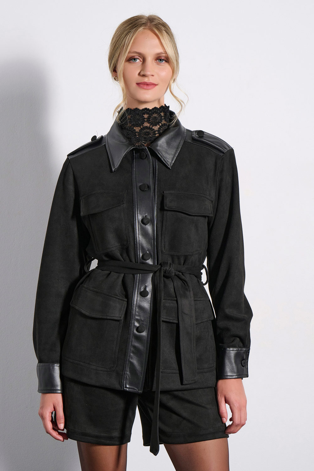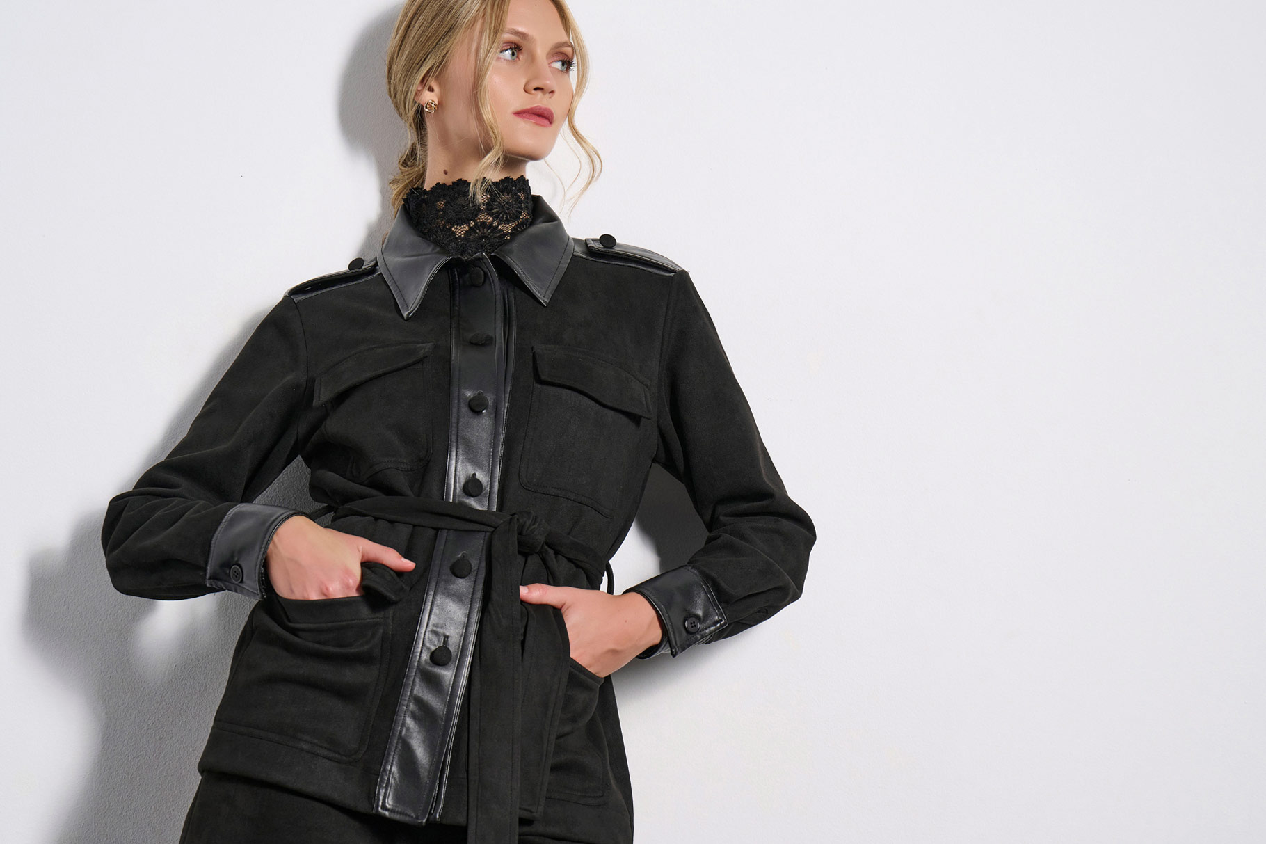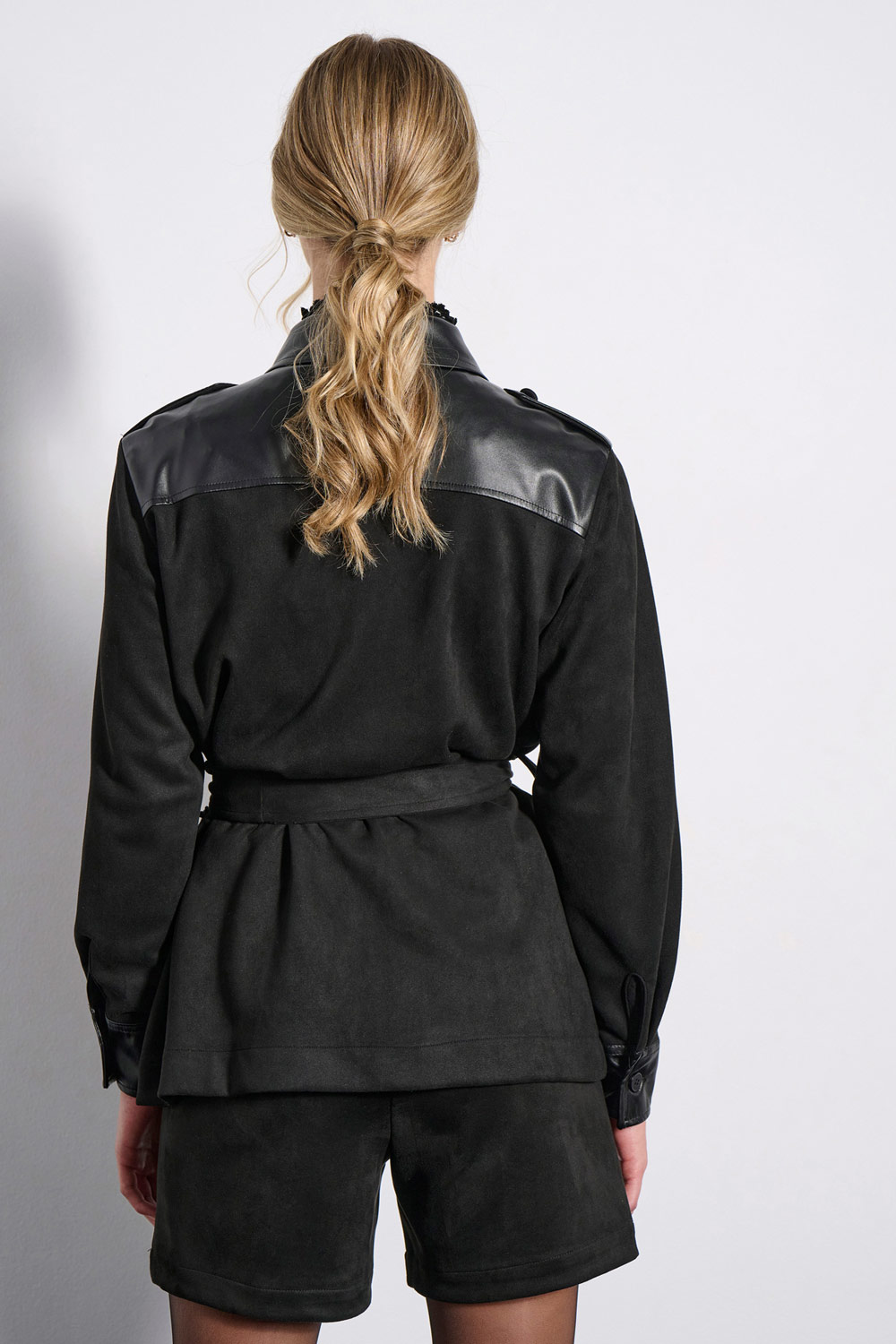 • LONG SLEEVES WITH SYNTHETIC LEATHER CUFFS AND BUTTON