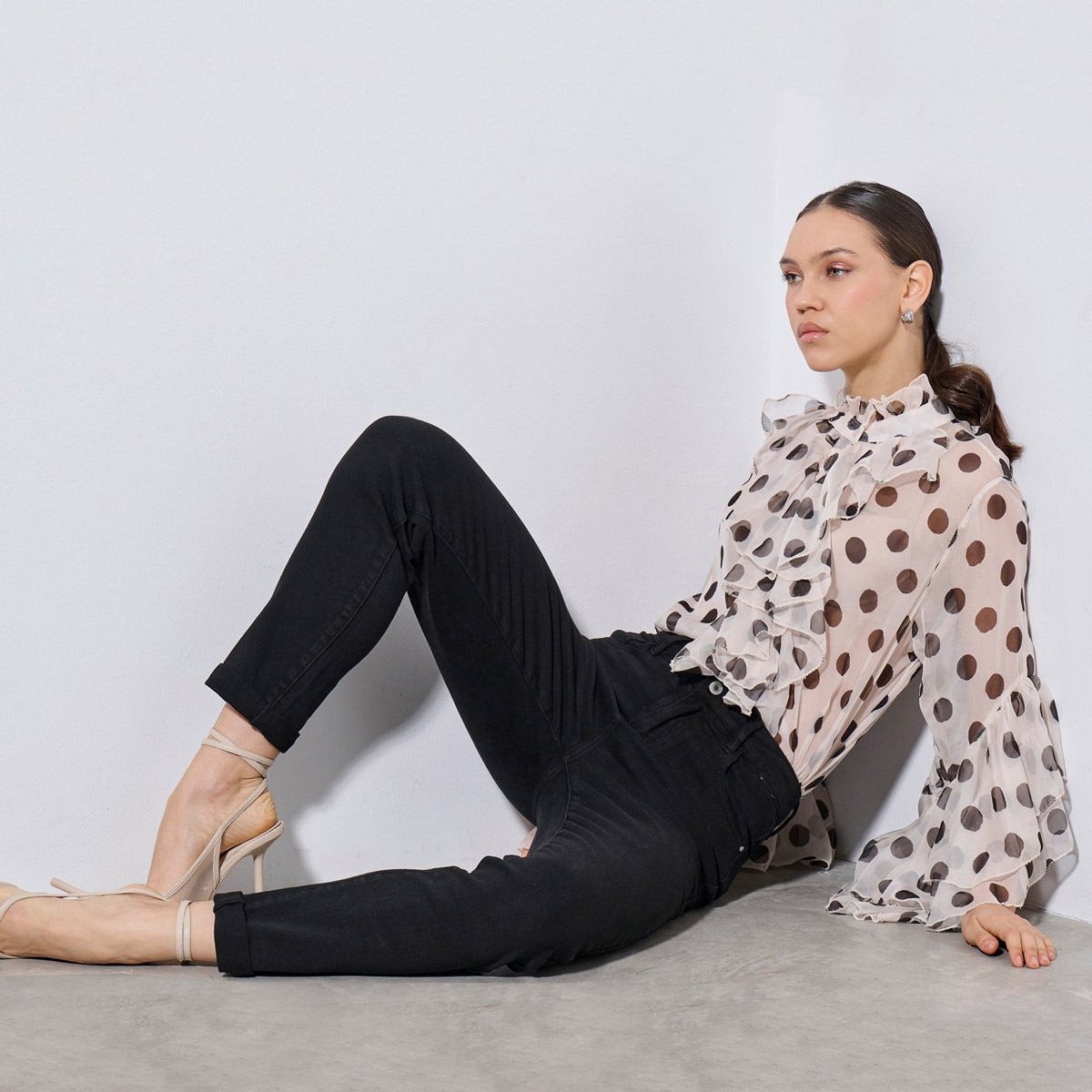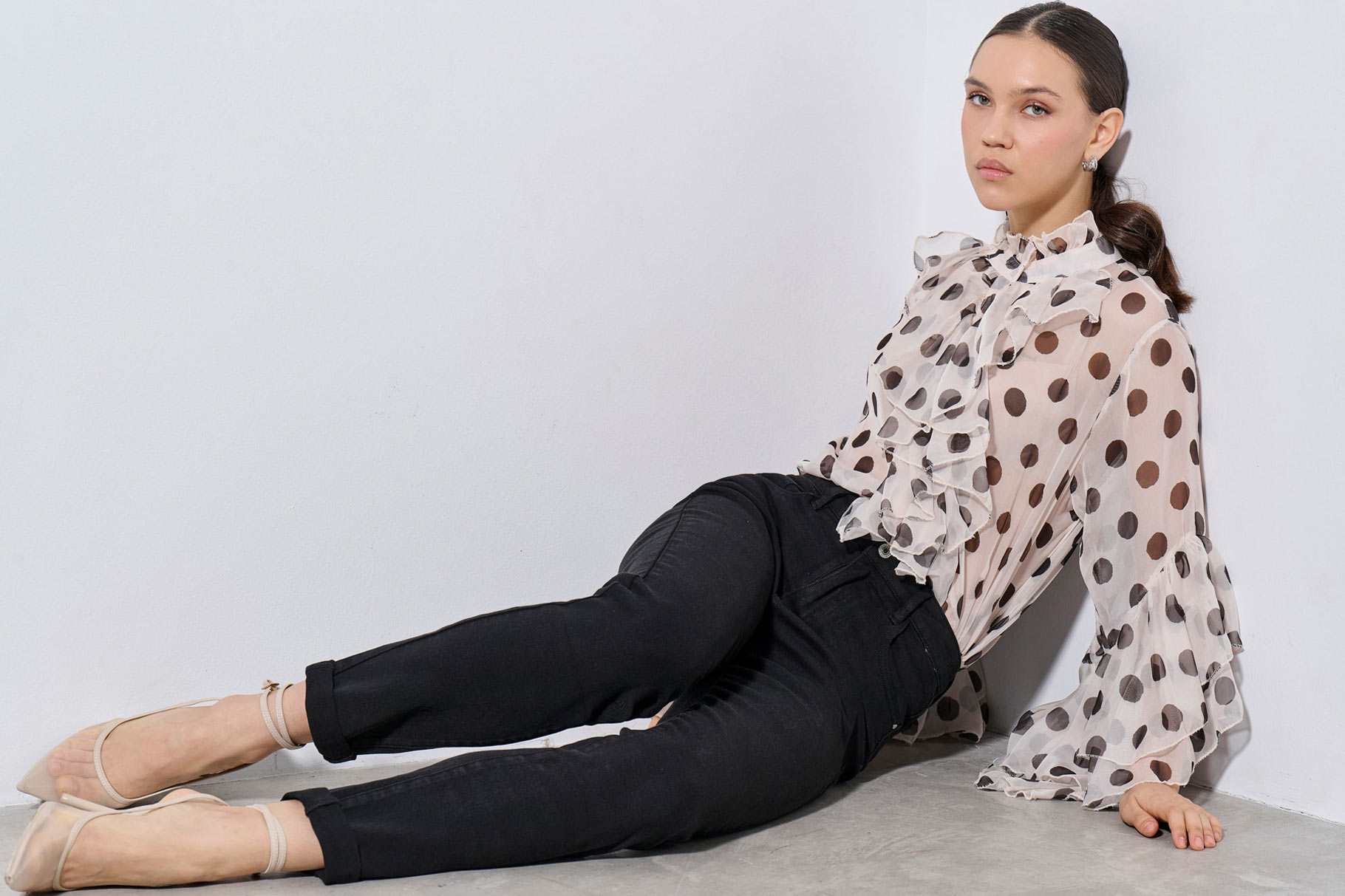 THE MODEL ON THE PHOTO WEARS SMALL AND HER BODY MEASUREMENTS ARE: